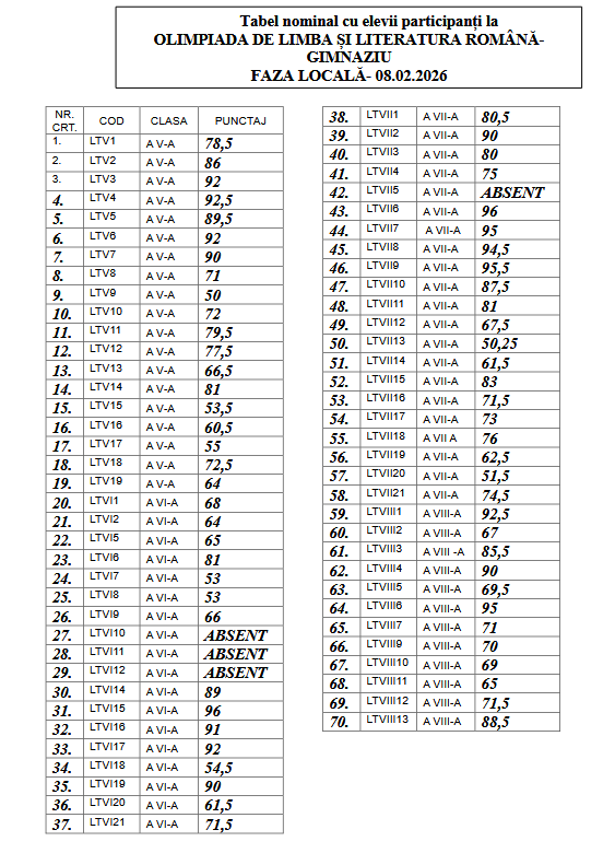 28.11.2025 – ora 10,00 – Recorectarea lucrărilor contestate și afișarea rezultatelor finale;